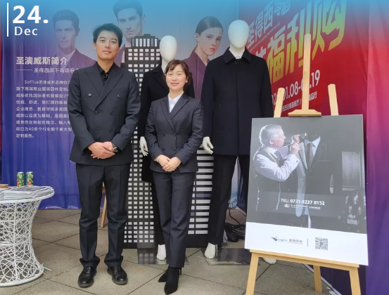 劇場外企業(yè)展覽會現(xiàn)場,圣澳威斯以一組現(xiàn)代城市背景、優(yōu)質優(yōu)雅的職業(yè)裝展示、精致的接待布景在展覽會上格外吸睛。這是圣澳威斯品牌精神的貫徹體現(xiàn),將周到、舒適的服務理念植入每一次客戶服務、展示展覽中。